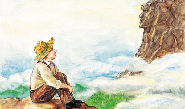 어니스트는 하루의 일을 마치면 홀로 큰 바위 얼굴을 바라보며 어떻게 살아야 큰 바위 얼굴처럼 훌륭한 사람이 될까 생각하면서 성장합니다. 후에 그는 맑고 순수한 사상이 그의 인격 속에 녹아든 설교를 통해 이웃들에게 영향을 끼치는 전도사가 되었습니다. 그가 설교하고 있던 어느 날 그를 쳐다보면 동네 사람들이 이렇게 외쳤습니다. “보시오! 보시오! 어니스트 씨야말로 큰 바위 얼굴과 똑같습니다.”